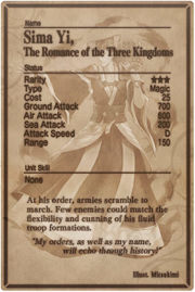 | 15:52, 21 November 2013 | Sima Yi card.jpg (file) | 93 KB | D-Troxx | 3 | ||